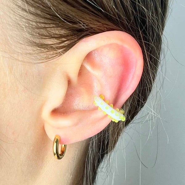 Dodaj odrobinę magii do swojej biżuterii! Pixie to ręcznie wykonana nausznica ze szkła, która zachwyca swoją kolorystyką i subtelnymi zdobieniami. Lekka, wygodna i pełna charakteru – doskonała dla tych, którzy lubią wyraziste akcenty.