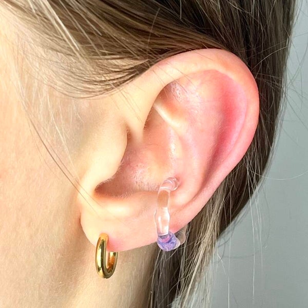 Nausznica Pixie bezbarwny + fioletowa kropelka